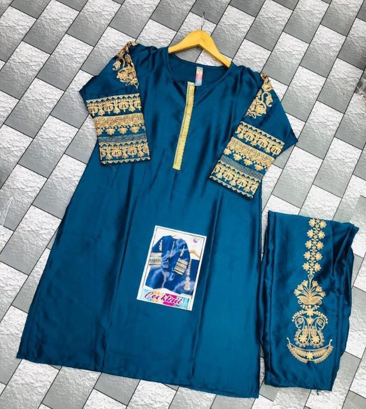 2 Pcs Women's Stitched Plain Shirt And Trouser
